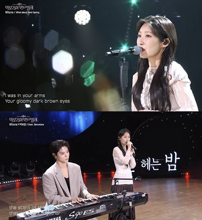 밀레나는 'The Girl From Ipanema' 무대를 보여준 후 박보검의 피아노 연주와 함께 'Dear, Barcelona'를 선보였다.