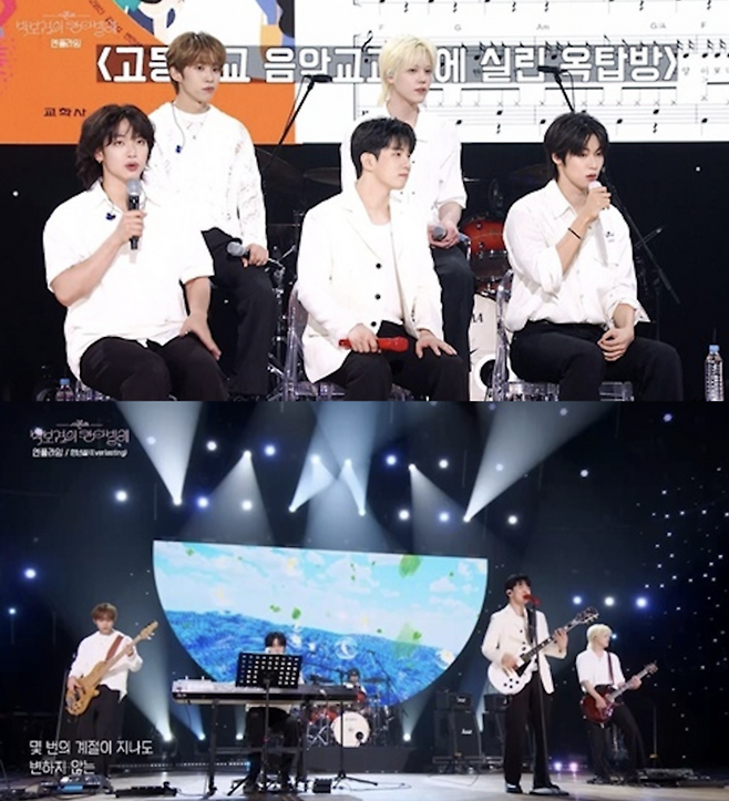 군백기를 마치고 완전체로 돌아온 엔플라잉은 히트곡 '옥탑방'과 새 앨범 수록곡 'Songbird'를 선보이며 뜨거운 에너지를 선사했다. 엔플라잉은 박보검과의 토크에서 '옥탑방'이 고등학교 음악 교과서에 실렸다며 "가문의 영광"이라는 소감을 전했다.