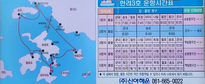 : 횡간도, 화태도(월전), 나발도, 대두라도, 월호도 (5개 섬) 순회