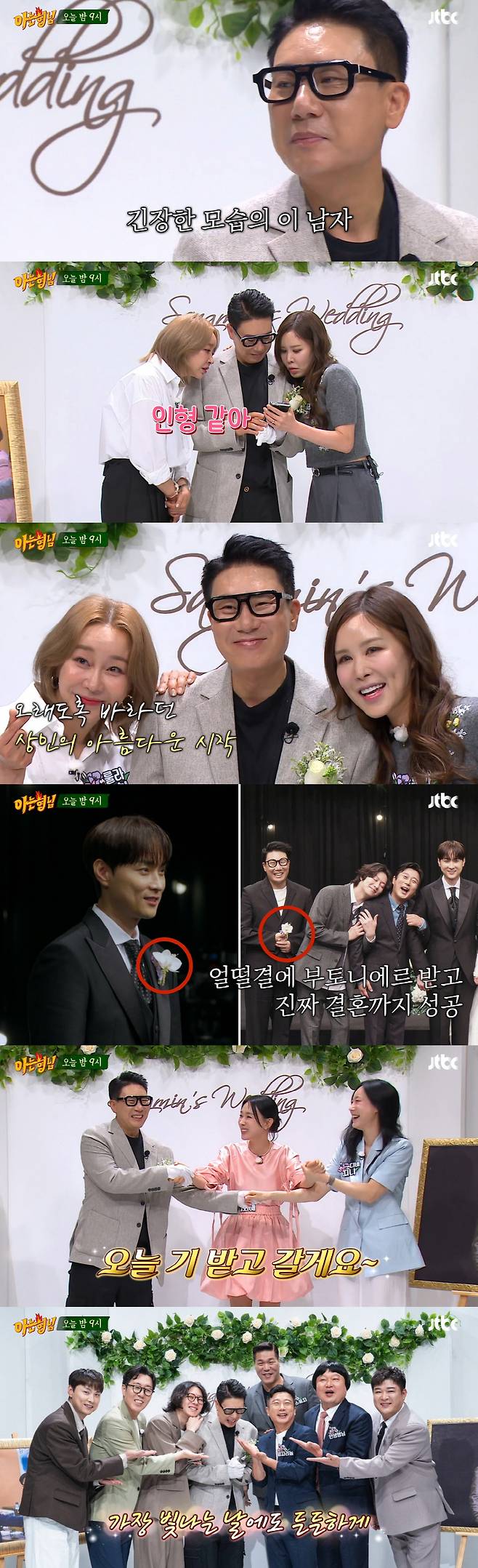 이상민은 "두 사람이 올 줄은 꿈에도 몰랐다. 너무 기분 좋다. 사회생활을 하면서 만난 가족이니까"라며 고마움을 표현했다. 이어 "내가 부토니에르 때문에 결혼했다. 민경훈 결혼식에서 이걸 받고 결혼에 성공했다"고 밝혔다. 이에 '미혼'인 지니는 "오늘 나한테 달라. 결혼 기운 받으러 왔다"고 말했고, 이지혜는 "다산운도 주겠다"며 두 사람의 손을 잡고 기를 나눠 웃음을 안겼다.