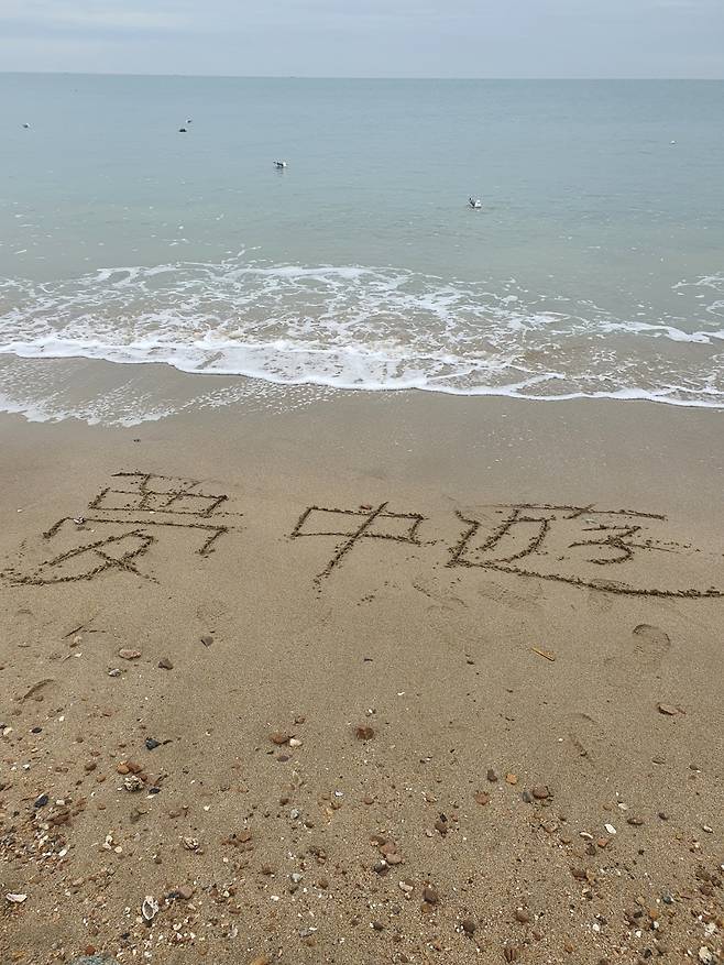 | ▲ 몽중유(夢中遊)-꿈속에서 놀다. 나는 무엇을 쓸 수 있는 공간만 있으면 습관적으로 쓴다. 제부도 바닷가 모래사장에서 밀려왔다가 빠지는 파도와 장난치며 꿈결 같은 순간을 보냈다. 남도 잡가 ‘흥타령’의 구절처럼 삶은 모든 것이 꿈인지도 모른다. |