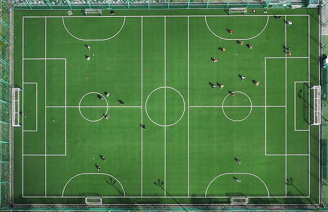 | ▲ 4월 20일 경기도 안산시 단원구의 한 풋살장에서 시민들이 풋살을 즐기고 있다. |