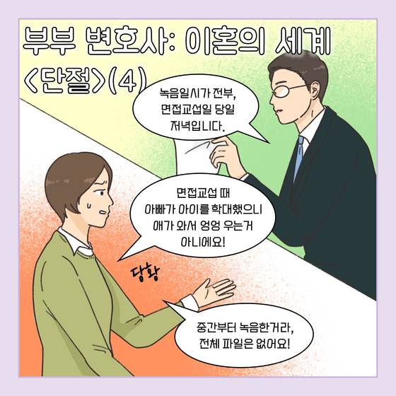 (※이 기사는 이혼 소송 과정에서 필요한 법률 지식을 웹툰 형식으로 이해하기 쉽게 제공할 목적으로 제작됐습니다. 실제 사례를 각색한 내용으로 언급되는 이름과 지명 등이 실제와 같은 경우가 있더라도 이는 우연에 의한 것임을 밝힙니다.)