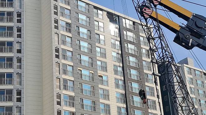 용인 아파트 덮친 천공기 이틀만에 철거 완료…안전진단 진행