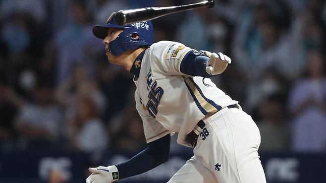 ▲ 3일 경남 창원NC파크에서 열린 2024 KBO 리그 SSG 랜더스 대 NC 다이노스 경기. 4회 말 1사 주자가 없는 상황 NC 7번 김성욱이 안타를 치고 있다.
