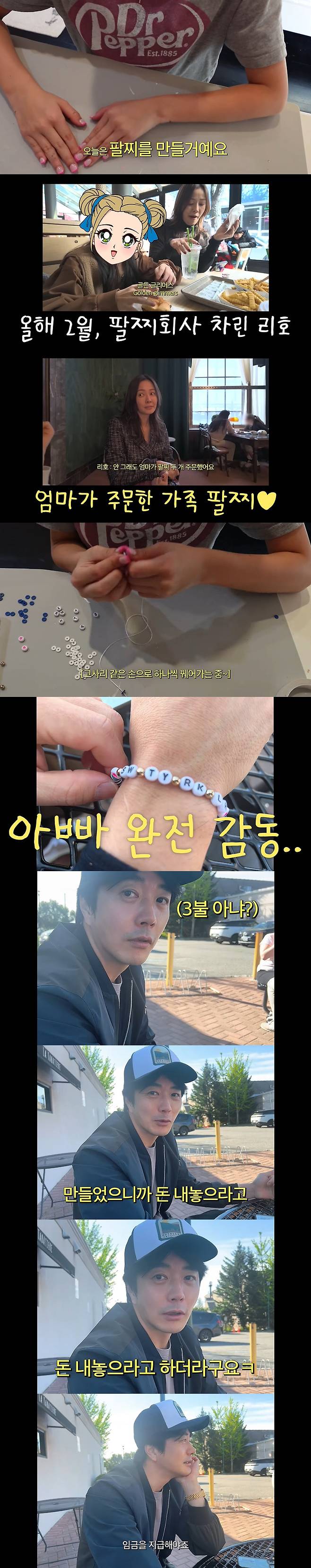 앞서 지난 2월 해당 유튜브 채널을 통해 팔찌 회사를 차렸다고 알린 리호 양. 이에 손태영은 리호 양에게 네이비와 화이트, 빨간 하트, 가족 이니셜이 들어간 팔찌를 주문한 것.