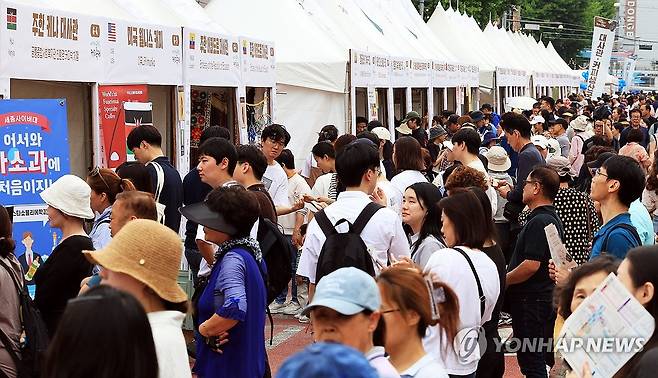 (서울=연합뉴스) 7일 서울 노원구 공릉역 일대에서 열린 '제3회 경춘선 공릉숲길 커피축제'에서 시민들이 이동하고 있다. 2025.6.7 [노원구 제공. 재판매 및 DB 금지]