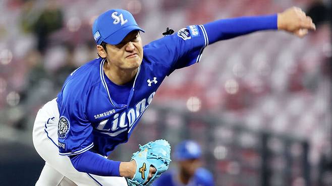 ▲ 2일 프로야구 삼성 라이온즈와 KIA 타이거즈의 경기. 삼성 백정현이 7회에 투구하고 있다.