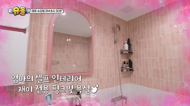 박수홍은 "핑크색으로 예쁜 공주님 집처럼 꾸몄다. 타일 하나하나 아내가 다 발품 팔아서 직접 다 골랐다"며 아내에게 고마운 마음을 전했다.