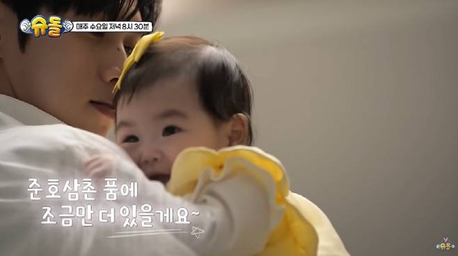 은우는 재이를 향해 "안녕"이라고 인사를 하고는, 재이 젖병을 잡아주는 섬세한 스윗 보이 모습을 선보여 박수홍을 웃게 했다.