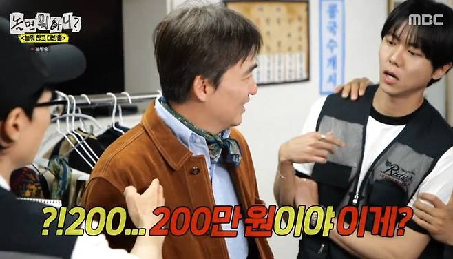 이에 주우재와 하하는 "이건 보통 재킷이 아니다" "한 번 사면 평생 입는다"고 입을 모았으나 김석훈은 "난 이게 20만 원인 줄 알았는데 200만 원이었다. 내가 동묘에 갔다 오겠다"며 당황한 반응을 보였다.