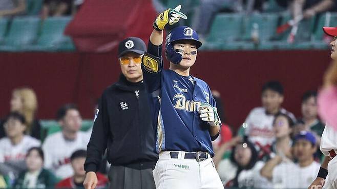 이후 맷 데이비슨의 볼넷, 박건우의 우전 안타, 손아섭의 좌중간 적시타로 추가 득점에 성공했습니다.