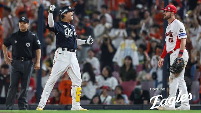 한화, 연장 접전 끝에 KIA에 신승…1위 LG에 반 경기 차 추격