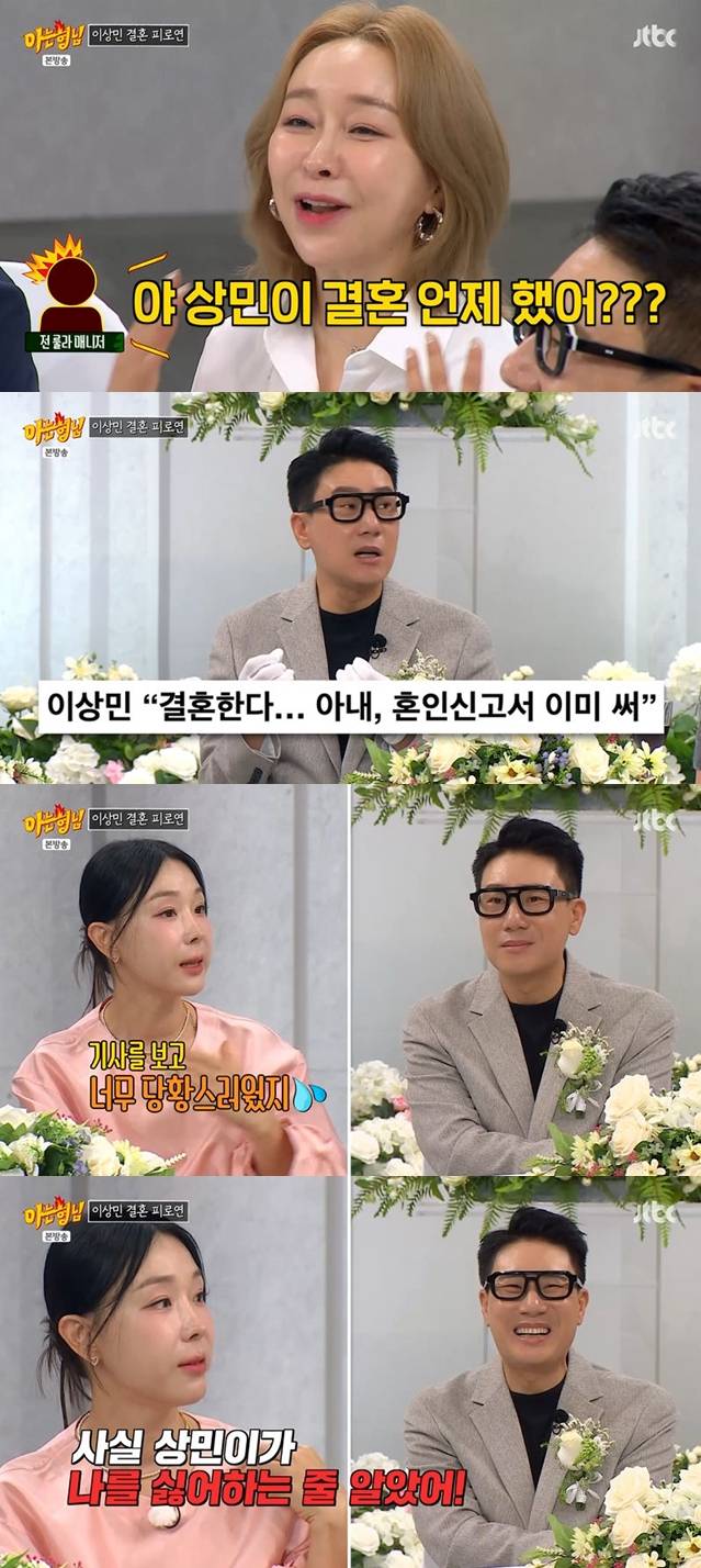이날 이수근은 "'아형' 하면서 (이상민과) 10년 알았는데 결혼 소식을 아예 몰랐다. 너네한테는 애기해줬냐"라며 룰라의 김지현과 채리나에게 물었다.