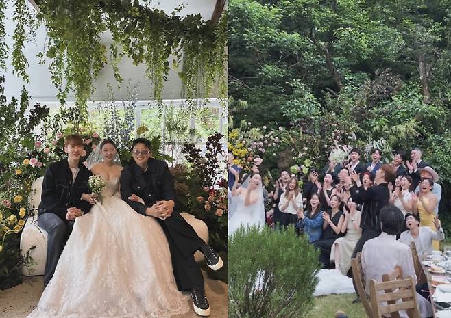 조권은 정진운, 우영 등과 함께 민과 기념사진을 찍었다. 특히 민이 던진 부케를 받을 때 남다른 텐션을 선보이며 분위기를 유쾌하게 만들었다. 조권 덕분에 민과 하객들 입가엔 모두 웃음이 번졌다. 민의 아름다운 웨딩드레스 자태도 시선을 모았다.