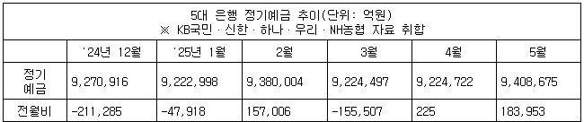 ![5대 은행 정기예금 대표 상품 금리 [은행연합회 소비자포털 공시 캡쳐. 재판매 및 DB 금지]](https://img2.daumcdn.net/thumb/R658x0.q70/?fname=https://t1.daumcdn.net/news/202506/08/yonhap/20250608060209100tknm.jpg)
