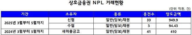신협과 수협이 유동화한 부동산NPL 총액은 1044억원에 달했다. 지난해 같은 기간 상호금융권(새마을금고 등)이 거래한 금액(410억원)에 비해 2.5배 크다.