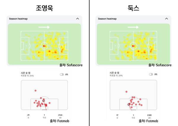 히트맵에서도 조영욱은 우측 하프스페이스에 위치하는 경우가 많았으나, 이렇다 할 생산성을 보여주지 못했고, 둑스도 연계를 위해 하프스페이스로 내려오는 모습을 보여줬으나 좋은 마무리로 이어지지 못했다.