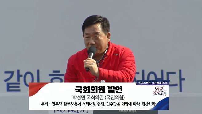 | ▲ 2025년 3월 29일 울산에서 열린 세이브코리아 집회에 참석한 박성민 국민의힘 의원. |