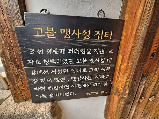 | ▲ 맹사성이 서울에서 벼슬살이 하던 시기 지내던 곳이다. (2025년 5월 촬영) |