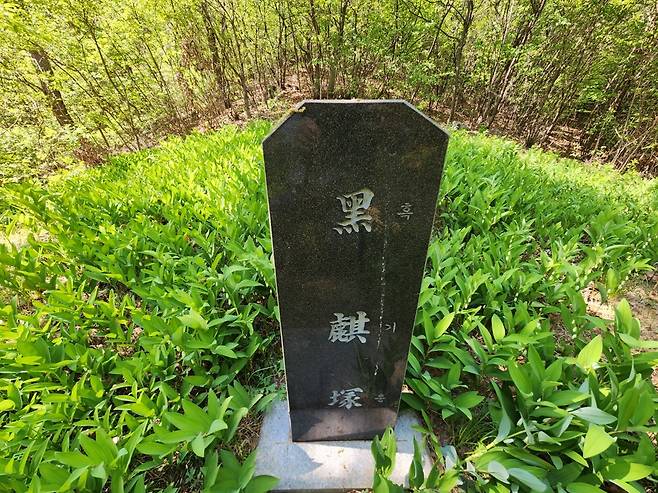 | ▲ 맹사성의 묘 가까운 곳에 그가 타고 다니던 소의 무덤 흑기총(黑麒塚)이 있다. (2025년 4월 촬영) |