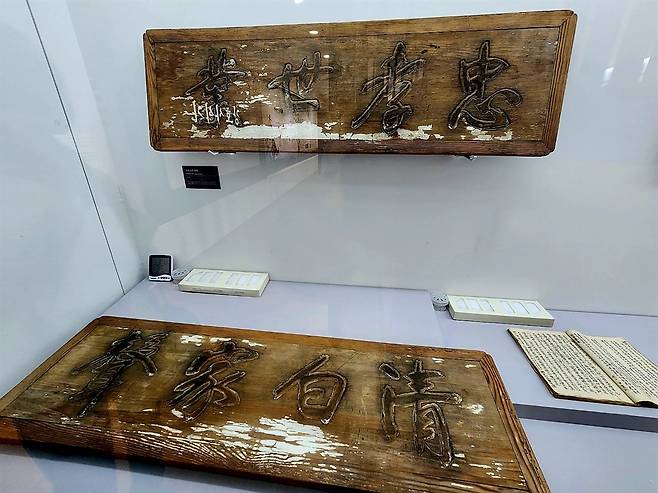 | ▲ 영조가 맹사성 집안에 내린 어필 사액 '충효세업 청백가성(忠孝世業 淸白家聲)'. “충과 효를 대대로 힘써 왔으며, 청렴과 결백은 가문의 영광이니라”는 의미를 담고 있다. (2025년 3월 촬영) |