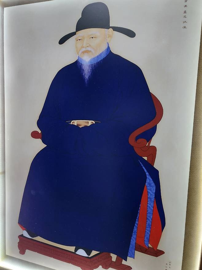 | ▲ 충남 아산 배방읍 고불맹사성기념관에 전시되어 있는 맹사성의 영정. 맹사성은 대사헌, 좌의정 벼슬을 지냈으며 79세까지 장수했다. 시호는 문정(文貞)이며 아버지 맹희도와 함께 ‘삼강행실도’에 이름이 올라있을 정도로 효행의 모범이 되고 있다. (2025년 3월 촬영) |
