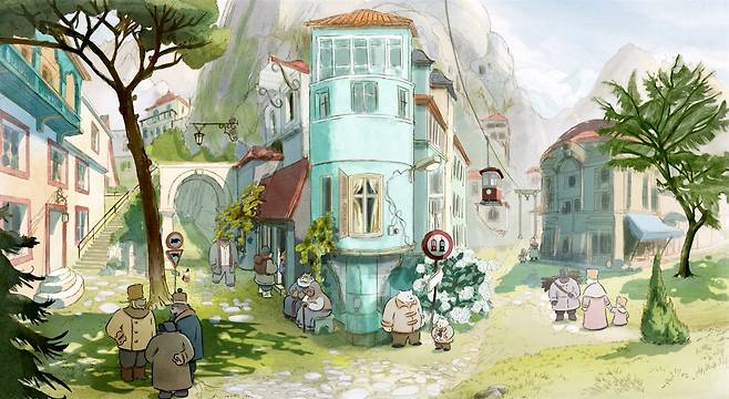 전편이 지상의 곰과 지하의 생쥐 나라로 이분화한 사회적 몰이해에서 오는 갈등을 중심축으로 이야기를 풀어갔다면, 속편은 멀리 동쪽에 떨어진 어네스트의 고향이 주요 무대로 기능한다. 험준한 산간지대에 자리한 샤라비는 극 중 셀레스틴이 휴대한 지도에 묘사되듯 동유럽 어딘가로 추정된다. 둘이 살던 마을이 프랑스라면 발칸반도 북쪽 카르파티아산맥 인근일 테다. 서유럽의 시선에선 유럽의 동쪽 경계이자 낯설고 신비한, 하지만 근대 이후 낙후된 동방과의 경계지대다.