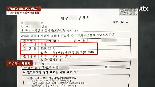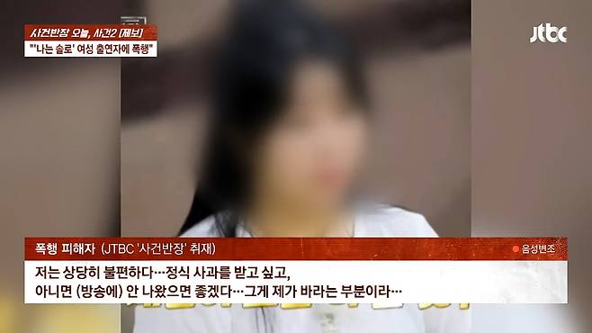 JTBC '사건반장'은 지난 6일 10기 정숙에게 폭행을 당했다는 남성 A씨의 주장을 보도했다.