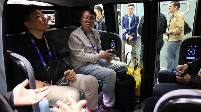 ▲ CES 2025 개막 사흘째인 지난 1월 9일(현지시간) 미국 네바다주 라스베이거스 컨벤션센터 웨스트홀에 마련된 아마존 자회사 죽스(ZOOX) 전시관에 4인승 로보택시 죽스를 관람객이 살피고 있다.