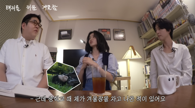 배우 김태리가 중학교 시절 겨울잠을 자고 일어나 10cm가 자랐다고 밝혔다.