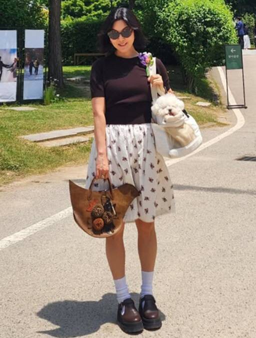 사진 속 한혜연은 지인의 결혼식에 참석한 모습. 검은색 반팔티에 화이트 플레어스커트를 매치한 심플하면서도 러블리한 패션을 선보여 시선을 모은다. 또한 한혜연은 강아지와 함께 결혼식에 동반 참석했다.