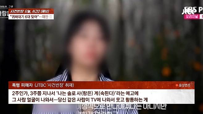 지난 6일 방송된 JTBC '사건반장'은 한 남성 A씨가 지난해 10월 대구에서 정숙에게 폭행을 당했다고 주장한 내용을 보도했다.