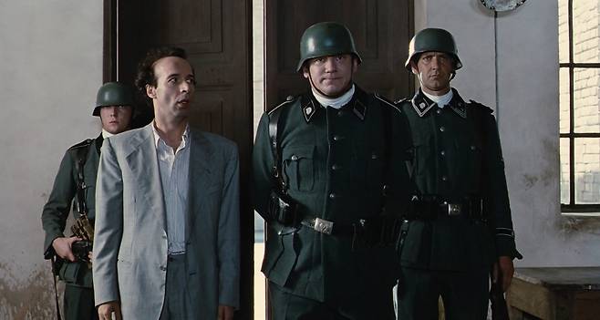 하지만 감독이자 주연이기도 한 로베르토 베니니는 <인생은 아름다워>를 사실주의 극화로 만들 의도가 아니었다. 그는 전쟁과 학살이란 현세의 지옥 속에서 이게 과연 맞는 일인지 예언자처럼 항변하고자 한다. '현실'에 순응하며 그저 '오늘도 무사히'를 되뇌일 수밖에 없음을 알지만, 자식의 안위를 넘어 인간성의 상실을 막으려는 필사의 사투가 얼핏 코미디로 보이는 전개 속에 깃들어 있다. 공포에 맞서는 유머라는 게 말처럼 쉬운 게 아니지만, 이 영화 속 귀도는 그걸 외줄 탄 서커스 광대처럼 목숨 걸고 감행하는 것이다.