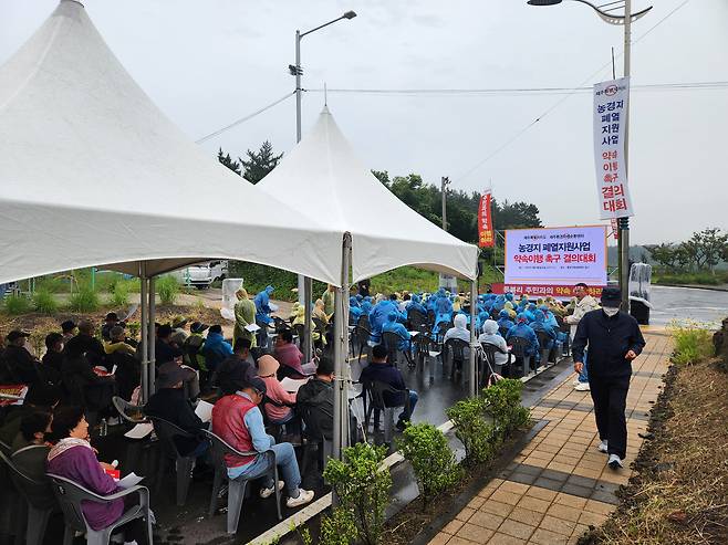 주민들은 센터 조성 당시 제주도가 농경지 폐열 지원사업을 반드시 이행한다는 것을 전제로 했지만 이를 지키지 않았다며 해당 사업 지원이 어려울 경우 당초 약속대로 대체 사업을 추진하라고 촉구했습니다.