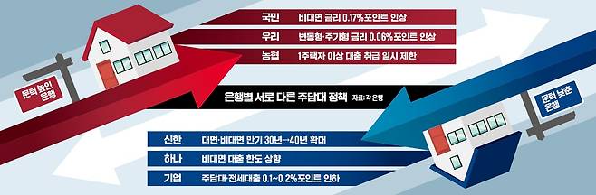 은행권의 가계대출 관리 전략이 엇갈리고 있다.