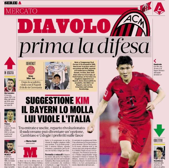 이탈리아 일간지 '가제타 델로 스포르트'는 지난 6일 "바이에른 뮌헨은 김민재를 버렸고, 김민재는 이탈리아를 원한다"라며 "김민재는 유명 이탈리아 에이전트에게 도움을 요청하며 세리에A에서 새로운 보금자리를 찾아달라고 요청했다"라고 보도했다.