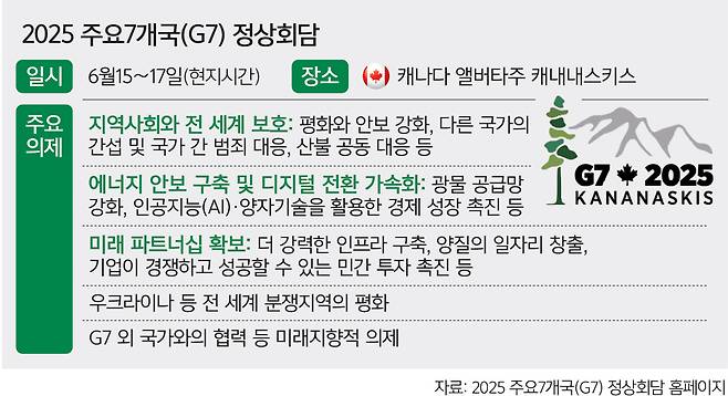 이번 G7 회의는 미국의 보호무역주의 기조에 따른 관세 문제와 중국의 비시장경제 관행에 대한 공동 대응 방안, 우크라이나 전쟁 지원 문제 등에 집중할 예정이다. 출범 초기 경제·무역·금융 문제에 집중했던 G7 회의는 이후 외교·안보 이슈로 논의 범위를 확대해 왔다. 방산협력을 주요 공약으로 내건 이 대통령이 이와 관련한 성과를 만들어 낼 수 있을지도 주목된다.