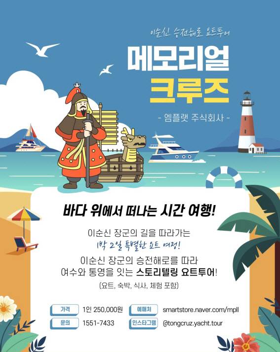 8일 해수부는 지난 3월 12일부터 4월 9일까지 진행했던 ‘제9회 우수해양관광상품 공모전’ 결과를 발표했다. 올해에는 ‘메모리얼 크루즈 -이순신 승전해로 요트 투어’, ‘인천의 보물섬 덕적도와 소야도, 바다그물체험 1박2일’, ‘씨(sea)-스테이 : 외국인 대상 해양여행 장기스테이 관광 프로그램’, ‘느림이 선물하는 섬 : 위도 말도 사운드워킹’, ‘목포 삼합, 체류형 감성 여행’ 등 5개가 뽑혔다. 이 가운데 ‘메모리얼 크루즈 -이순신 승전해로 요트투어’는 경남 통영시와 남해군, 전남 여수시에 걸쳐 이뤄진다. 해양레저 장비가 제공되며 어촌체험 프로그램, 식사, 숙박이 준비되어 있다.
