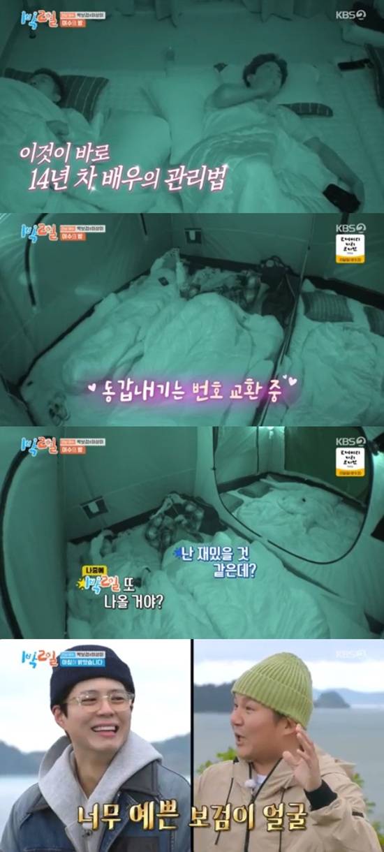 박보검은 문세윤의 코골이에도 잘 자는 모습을 보였다. 같은 시각 텐트 안 딘딘은 이상이의 코골이 때문에 거리두기를 하면서 자고 있었다.