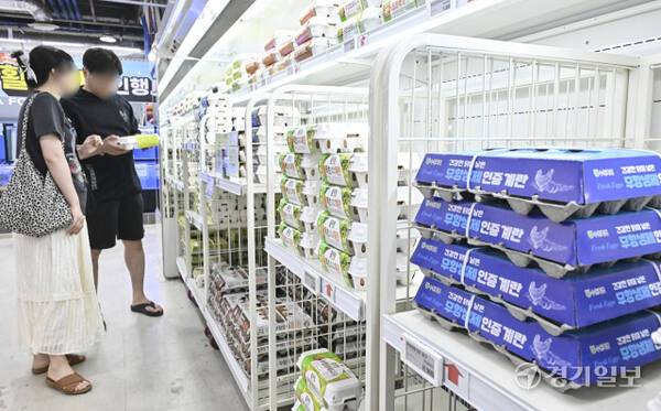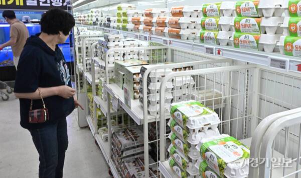 8일 한국농촌경제연구원에 따르면 산란계 고령화와 저병원성 조류인플루엔자(AI), 전염성 기관지염(IB), 가금티푸스 등 질병 발생으로 인한 생산성 저하로 오는 8월까지 계란 가격이 1년 전보다 12.4∼18.5% 오를 것으로 내다봤다. 사진은 이날 오전 수원특례시 권선구 한 대형마트에 판매중인 계란 매대 모습.