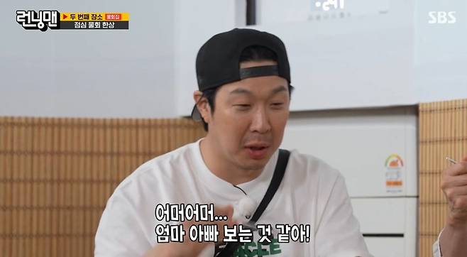 그 말에 하하가 "엄마 아빠 보는 것 같다"라고 했다면 유재석은 "이제 와서 그렇게 쳐다보는 것도 이상하지"라고 일축, 런닝맨들의 배꼽을 잡게 했다.