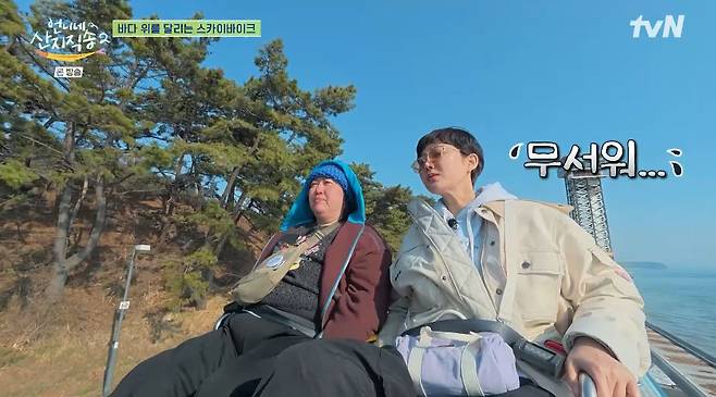 그러나 감탄은 잠시, 앞자리에 탄 이재욱이 힘차게 페달을 밟자 염정아는 "재욱아 너무 흔들지 마. 무서워"라며 두려워하는 모습을 보였다.