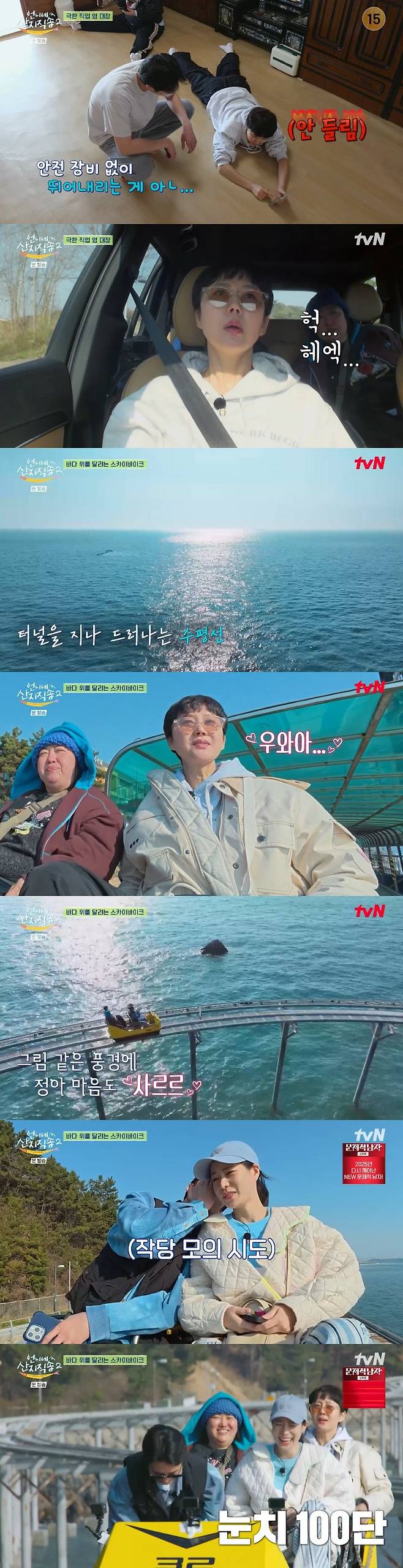 집라인을 무서워하는 염정아를 위해 스카이바이크로 변경했지만, 염정아는 긴장한 기색을 드러내며 "별걸 다 한다"라고 무서운 마음을 드러냈다.