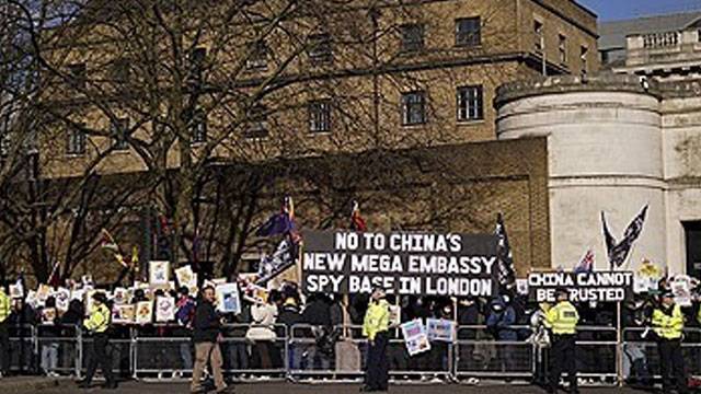 그러나 일부 주민과 인권 활동가 등이 도심 주요 위치에 거대한 규모로 중국 대사관이 들어서면 영국 안보와 영국 내 중국 반체제 인사들의 안전에 위협이 될 것이라며 반대했고, 관할 구의회는 건립 계획을 불허했습니다.
