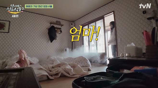 뒤이어 김혜윤은 이재욱이 자고 있는 방으로 이동해 "재욱아"라고 외쳤고, 이재욱은 귀신이라도 본 듯 놀라더니 다시 이불을 덮고 잠을 청해 웃음을 자아냈다.