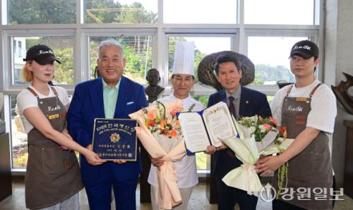 강릉시 옥계면에 위치한 썬옥 베이커리&카페 소속 김동출 제빵사는 지난 6일 사단법인 한국관광평가연구원으로부터 한국명인장 인증서를 받으며 겸손하게 말했다.
