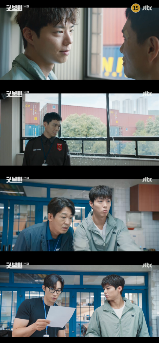 8일 전파를 탄 JTBC 토일드라마 ‘굿보이’에서는 민주영(오정세 분)에게 분노한 윤동주(박보검 분)가 깨부신 유리창의 수리내역서가 도착했다.