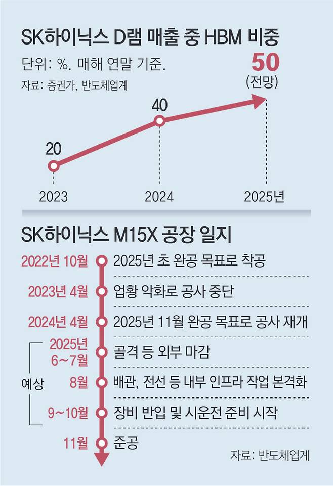 SK하이닉스의 고대역폭메모리(HBM) 전진기지가 될 M15X 가동이 가까워지면서 국내 반도체 업계의 기대감이 커지고 있다.