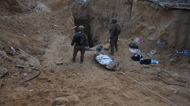 ▲ 가자지구 땅굴서 무함마드 신와르 시신 확보하는 이스라엘군